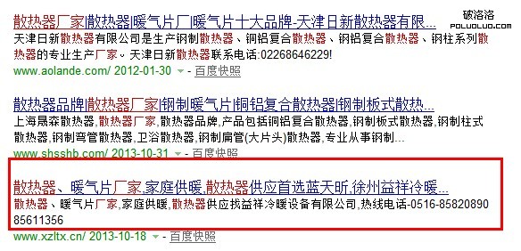 散熱器廠家這個關鍵詞競爭性經過看關鍵詞分布分析後,可以看到競爭程度不是很大,首頁前三個的網站有兩個顯示完整一個顯示不完整,但從位置上可以發現不是很強,接下來會說到位置。