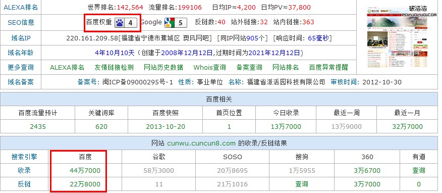 當一個網站收錄有44萬之多的時候,但是日IP竟然達不到上萬,這是如何可笑的事情。首先得到排名的關鍵詞,無任何競爭度可言,只需做好標題,大致就能有個好的排名。之所以網站IP被限制,其中筆者認為有前面三點的原因所在。所以筆者認為此網站需要進行小部分的整改,才能沖破牢籠。從這個網站也給我們提醒,優化人員的站內策略對網站發展至關重要。