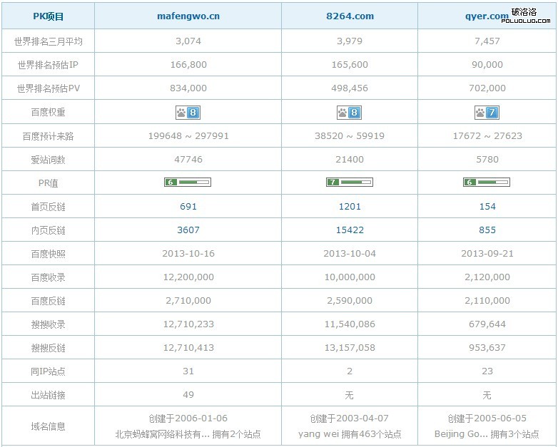 先粗略看一下網站一些數據對比,數據都是估算,與實際數據可能有差別,但還是可以參考一下,從中我們可以看出一些區別,得出一些結論。