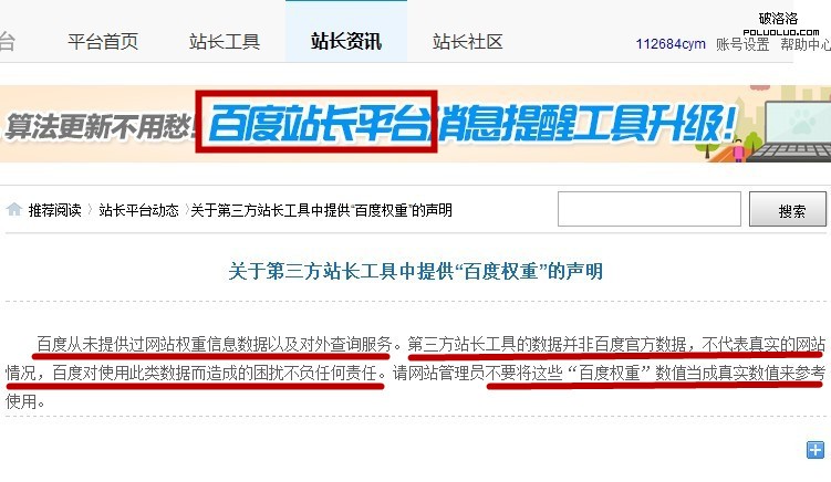 作為站長,百度權重大家應該不陌生,都很熟悉。在談這個問題之前,我給大家看一段百度官方的文字公告,原文地址zhanzhang.baidu.com/wiki/36