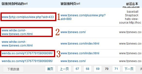 我標注了1,,2,3一共三個鏈接到網站的URL,其中1和3的YRL中不包含域名tzxnews.com而2是包含的。我給大家分別截圖。假設我點擊3,這類鏈接到網站的URL是不帶有網站域名的,點擊來源進去可以看到: