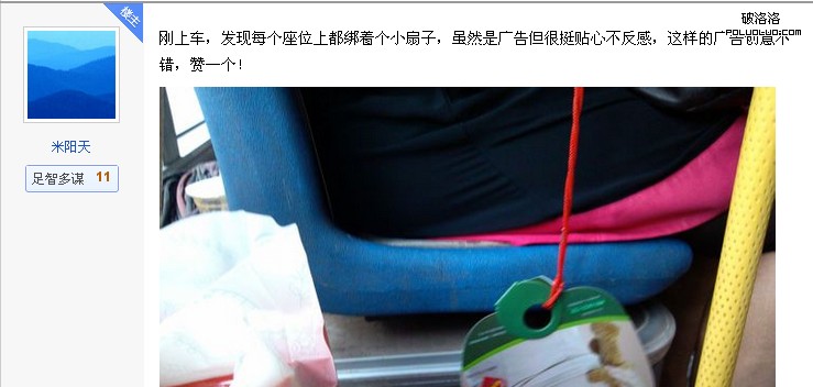 公交車扇子廣告,在這個季節是比較合適的,特別是今年的天氣是變態的熱,再加上有的公交車沒空調你知道麼......這個時候,你免費提供一批扇子,印上一面的公益廣告,一面的醫院廣告.....自己百度下吧,有公交車再招贊助扇子的,一個扇子才幾毛錢,更重要的是目前網絡上的乘客都是真心的贊許這樣的行為,即使大家都知道是打廣告的......