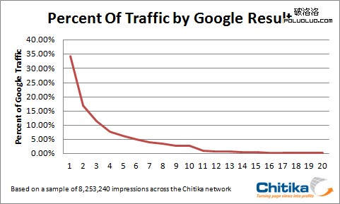 Google排名第一位到十八位點擊率(CTR)調查: