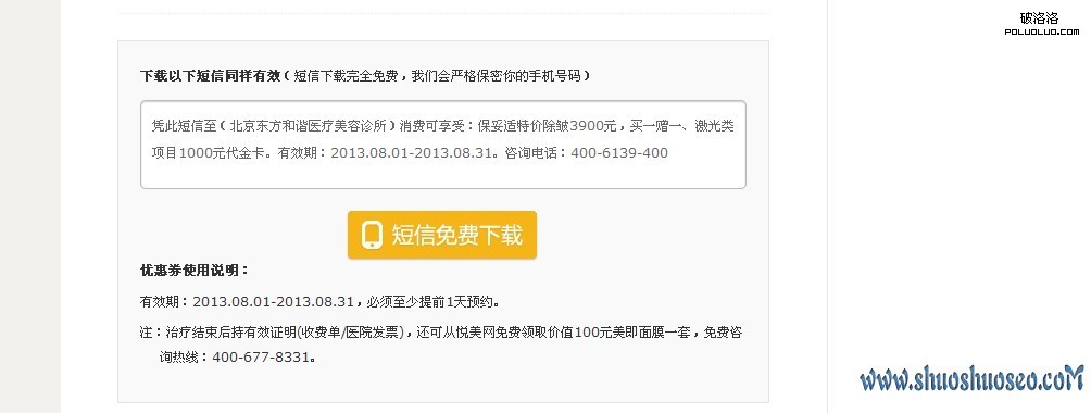 很 多商業的網站總是恨不得網站到處都是商務通,強迫用戶留下聯系方式。但是用戶喜歡這樣的嗎?估計是會有一些剛性需求的用戶會與你對 話,但是這種用戶又有多少呢?就是一些用戶跟你對話,這些用戶會跟你成交嗎?效果你可以問問你的咨詢人員就知道了。我們在來觀看悅美網是怎麼做的。進入網 站看上去是非常干淨的,根本沒有很多商務通。都是讓用戶充分了解他們想知道的東西,在優惠的這個欄目也是讓用戶自動留下預約信息的。千萬不要擔心這樣的轉 換不好,如果你的網站在120有問必答做了投放的話,你去觀察一下數據。對話的數據竟然比你在百度投放的關鍵詞的對話數量還要多,這個說明什麼?就是你的 網站商業性太重了,反而用戶不留下信息。
