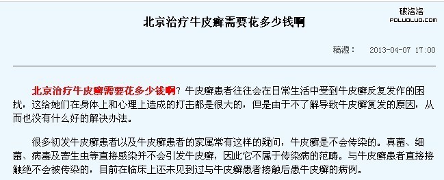這樣的例子很多,這個完全是修改標題隨便湊合一篇文章。還有一些文章是由編輯們在網上找一些這樣的文章,然後隨便修修改改,關鍵詞什麼的隨便修改,內容東平西湊,迎合所謂搜索引擎的原創,但是這樣的文章沒有可讀性。文章中經常會出現醫院名稱,專家等等,但實際上這些根本就不是專家寫的文章。用戶進去之後看得可能一頭霧水,有可能還會誤導患者。其實網站內容真的沒必要為了原創而原創,原創是必須的,轉載是錦上添花的。這是在盧松松的博客中看到的。其實這句話確實挺不錯的,看看權重很高的新聞網站,難道他們的原創有那麼高嗎?大部分都是轉載的,只有一部分是自己的,但是內容切合實際,用戶更加喜歡浏覽。再看看權重很高的月光博客,你沒發現他的文章大部分也是轉載的嗎?但是照樣是高權重,哪裡來的呢?那就是文章很吸引人,也沒有為了原創而把別站的內容給修改了。
