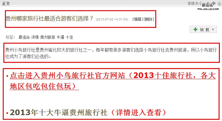 一、將旅游網站帶有推廣性的軟文外鏈刪除掉