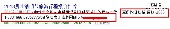 舉個例子:筆者一直在負責貴州旅游網站的外鏈發布,在發布的時候筆者花錢購買了一些新聞源去發布一些帶有各種聯系方式、多個URL、明顯超鏈接的軟文,這類軟文一看就知道是帶有明顯推廣性的軟文外鏈,然後今天百度綠蘿算法2.0出來後,必要要對此做出一定的解決,所以筆者要查看旅游網站的外鏈,把一些相似的外鏈全部刪除掉並將百度快照刪除掉,雖然這種方法是非常累人的,但刪掉之後對網站的好處是很大的。