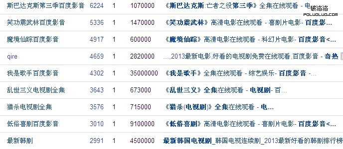 其實奇熱網因為域名權重極高,所帶來的流量真的很大,頁面很多,所以頁面價值很高,這種頁面價值讓流量層現高而廣的趨勢,所以很多時候一個網站的流量能不能很高,取決於他的頁面是不是很多,和頁面的數量息息相關,這種關鍵字需要挖掘嗎?我覺得更多的在於獲取,畢竟這種大型的網站所擁有的不就是龐大的數據頁面嗎?這種數據的頁面來源於我們所觀看的電視劇,所看的電影,所看的歐美劇,以及各種綜藝節目,當這些在一起的時候,就是各種長尾關鍵字資源,而每一家影視網站都應該有自己的數據庫,這些數據可以給你帶來足夠多的價值來改變自己的頁面流量線。一般而言,只要域名權重高,這些其他頁面的權重都不會很低,所以說,如果你的域名權重在慢慢的積累,那麼何不多多的提高百度的索引,讓這些索引更大化的為自己的權重服務呢。