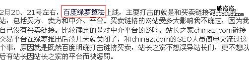 當文中提到了綠蘿算法時候,相信正在浏覽這篇文章的用戶都會想知道綠蘿想法的詳細情況,於是zac就做了這個詞的錨文本,並且指向他最近的一篇關於綠蘿算法的博文去,讓用戶能夠了解更多,這樣做能夠有效提高用戶對網站粘度,seoer在添加錨文本的時候也應該學習zac,只有充分滿足用戶的需求的錨文本才是真正有意義的。