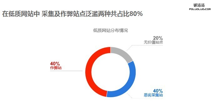 報告中還提到優質站點僅1/4,剩下的75%都是低質網站,且以采集站數量較為集中,占比約40%,這類網站利用采集方式羅列大量同質內容,並出現文不對題、采集不全、誘導用戶點擊等多種現象,加以泛濫的彈窗、廣告、病毒等嚴重影響用戶的訪問安全及閱讀使用體驗。