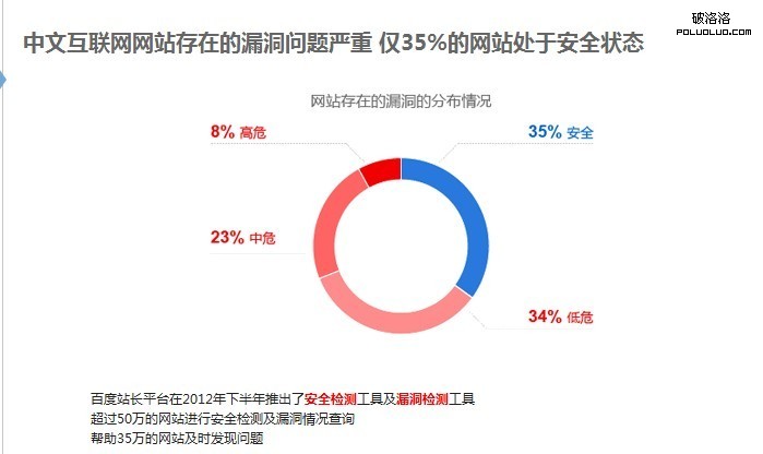 報告中還提到,中文互聯網網站安全問題較為嚴峻,其中65%的網站存在不同程度的系統漏洞,僅35%的網站處於安全狀態。