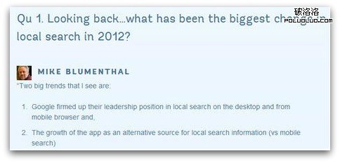 Google 尊敬那些生產優質內容的人們。一個比較容易的方式是采訪你所在行業中的專家,把采訪內容發布出來。這種采訪不一定面對面。比如下面的例子,采訪可以用郵件、電話或面談等形式。