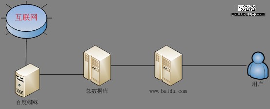 看了上圖我相信大家都應該明白,排序的殘產生應該是在“總數據庫”和www.baidu.com之間發生的變化,百度蜘蛛會采集很多內容回來,全部存放入總服務器,總服務器通過規則判斷篩選後最終在web服務器上放出頁面給出排序,其實就是在“總數據庫”發生了一些列的算法變化。當然我這邊闡述的內容中的各個服務器和名稱全部是我個人定義,但基本的邏輯應該是如此的,按照數據分析的原則:數據收集-----數據處理-----數據分析儀-----數據展現,其實就很能概括百度這一行為。