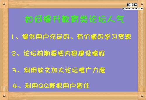 如果能夠做到以上四點,並且能夠一直堅持下去,相信你的教育論壇很快就能吸引到大量的用戶,人氣也將會節節攀升,祝願各位論壇站長都能成功!