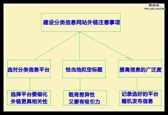 我們都知道,一個網站的外鏈優秀不僅在於其相關性好,還在其廣泛性夠好,在建設分類信息網站外鏈時候必須要注意“撒大網,撈大魚”。上面我們說了如何選擇分類信息平台要注意細化,這裡我們就要強調,選擇平台要注意廣泛化,seoer應該根據第一點提到的方法選擇幾個收錄好,權重高的平台,然後把幾個平台記錄在一個文檔上,一周隨機在這些平台上發布外鏈,這樣的效果絕對會比你一天或者幾天在同一平台上發布無數外鏈好很多。