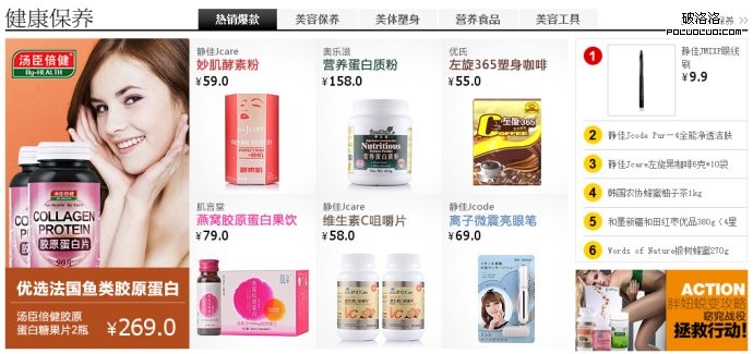 目前賣保健品的網站雖然不少,但垂直領域裡做的好的並不多。但我們可以參考和保健品特征類似的產品網站,比如同樣注重功效的化妝品網站(比如樂蜂網、聚美優品等)。