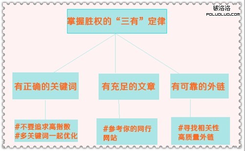 以上就是“三有”定律的全部內容,雖然說起來簡單,但是真正做起來還是要靠大家強大的執行力才能真正讓seo戰役的勝權牢牢掌握在我們手上。