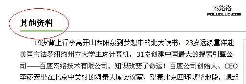 其次,再深入閱讀其內容時,也會發現其內容編寫顯得不夠專業。比如“李彥宏”這個詞條,前面一大部分好像沒什麼問題,但是到最後卻來了個“其它資料”草草了事,如圖: