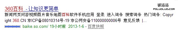 首先來看看一些可以挑刺的地方。首先從首頁標題上,360百科就顯得不夠權威,如下圖: