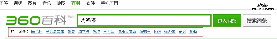 其實這只是個人看法。接下來看看其它一些值得挑刺的地方。可以明顯看到的就是360百科搜索框下面沒有導航欄,而是用一些熱門標簽詞代替,如圖: