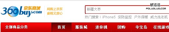 很多時候,我們在關注用戶體驗的時候,如果看到一個做工粗糙的網站,你會有跟進一步的勇氣嗎?這個也說明了美工的重要性,在京東商城之中,美工能力自然是固定很久了,相信這套模板也是分析轉化率很久的,自然也是代表著本身的一種品牌。如圖京東的logo和導航