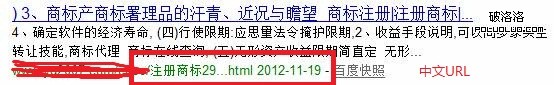 特征三總結:百度可以讀取URL前面的詞語。圖九描文本為:什麼是同類同一商標計策。圖十跟圖十一的描文本均為來源於(注冊商標網感覺是因為URL之前的詞語是以結束符號,