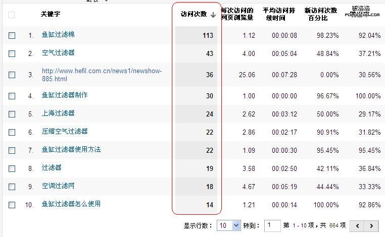 最後是分析關鍵詞,看看你更新的內容中哪個關鍵詞帶來的流量比較多,依次往下排列,同時還可以使用之前我們說的那個方法導出相關的表格仔細研究。