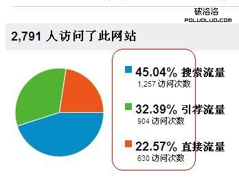 根據之前的設置了查詢的時間段之後,就可以分析你的網站在期間的流量來源了,圖中依次往下是:通過搜索引擎引來的流量;通過其他網站引薦來的流量;通過直接訪問帶來的流量。