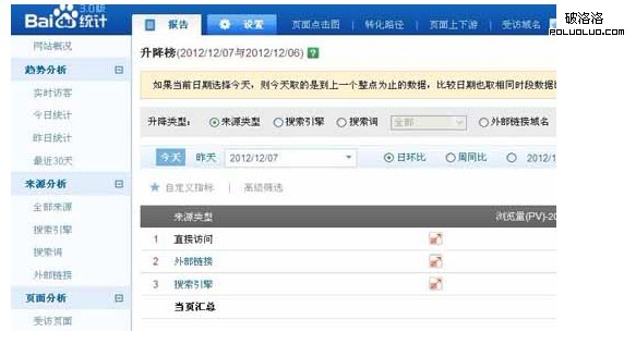 現在大家比較熟悉的一些統計工具應該是百度統計、站長查詢、51la等,幾乎百分之90的站點都安裝了百度統計的這個數據統計工具,主要是因為它可以直接嵌入我們的站點,而且相對而言對於統計自己站點的一些數據還是比較准確的,百度的統計工具是我每天關電腦之前必須去看看的一件事情,倒也不是說筆者是一個數據狂。雖然SEO最看重的其實還是流量,但是筆者覺得SEO不應該只停留在流量上面,如果流量不准確那麼就算有再多的流量,轉化率也不會那麼客觀,所以我覺得流量應該分很多中,想SEO行業不是淘寶商城,我們每個人都需要衣物蔽體,但是不是每個人都需要SEO的,百度統計工具其實還是非常不錯的,百度統計工具進去之後左邊的那些分析版塊自己看一看,我今天主要說說怎麼利用百度統計工具來給自己的站點做SEO優化。