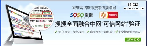搜搜是繼搜狗之後與中網聯合推出安全驗證的搜索引擎,這對於用戶體驗來說,肯定是好事,畢竟現在的網絡安全確實是一大問題,這種安全提示,有利於用戶避免受到釣魚網站的詐騙。