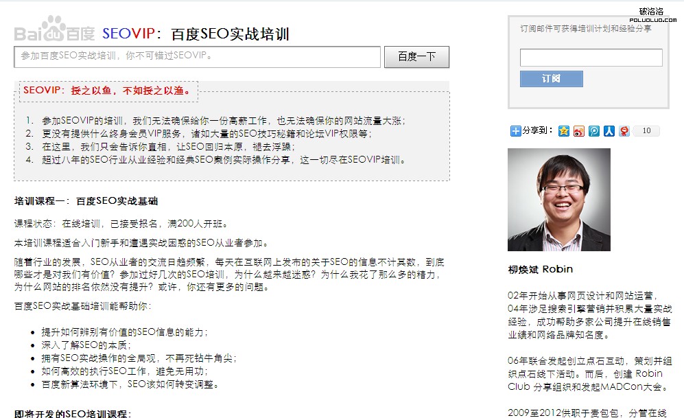 今天最讓我們這個做SEO震撼的一件是你們知道是什麼嗎?那就是robin(柳煥斌)優化的一個單頁面網站居然在上午沖到了百度“SEO培訓”第四的位置,到了晚上居然沖到了第一位(圖1),整個QQ群裡面都炸開了鍋。