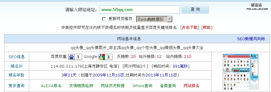 筆者從自己經營的一個QQ類的小站來分析一下排名下降的原因,先說一下這個網站的情況吧,如圖: