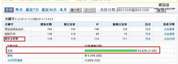 在我們不斷的依賴於百度指數的同時,你是否發現百度指數的數據與真實的流量並不一定就是成正比的。有的時候百度指數高的詞,所獲得流量卻相差懸殊。就比如筆者的站點,其中有一個百度指數為255的詞,但是實際從這一個詞所獲得的流量確實只有112次,相差了一半以上。如下圖所示。