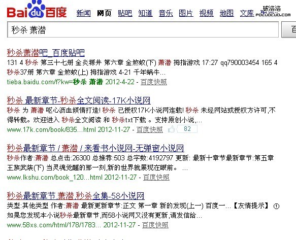 這2個截圖當中,你會點擊哪一個結果呢?了解到我們的用戶需求是無彈窗的,所以如果在網站搜索結果頁面注明我們的網站是無彈窗是不是就會增加用戶的 點擊?而很多小說站並沒有在標題裡注明無彈窗(即使真的是無彈窗),大家可以看下圖這個網站的標題基本都帶有“無彈窗”的字 眼,這個就是用戶體驗的差異化,吸引用戶的點擊。