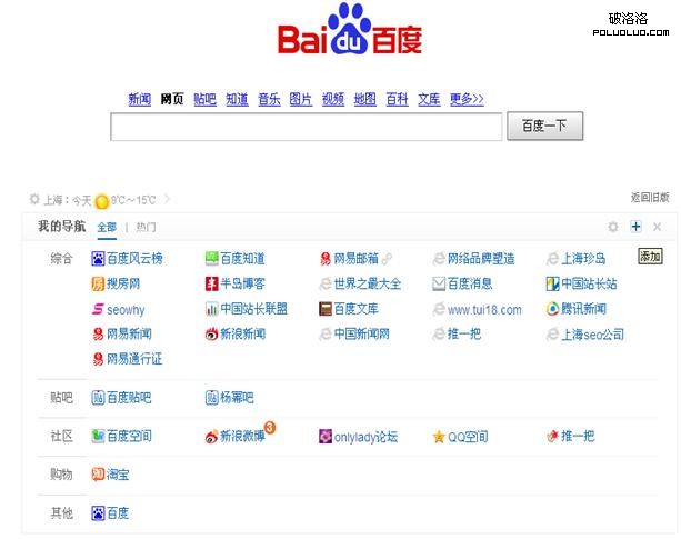 注釋:這樣隨心所欲,永無止盡的添加和整合自己所喜歡的東西,能讓用戶更加方便和快捷的浏覽自己需要的網站,只要打開百度首頁即可。
