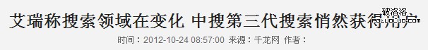 除了這些巨頭搜索引擎的巨大戰火之外,今年初在搜索領域開始小有名氣的中搜最近也受到越來越多的關注。下面是我截取的幾個新聞標題: