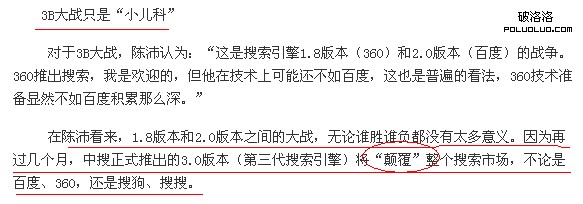 在搜索引擎領域,最近討論得最多的當然是“3B”大戰,兩者已經從網上的亂戰進入到正規的司法程序。而夾在中間的搜狗似乎沒有受到多大影響,據說公布的第三季財務預算總總體運營還很不錯。