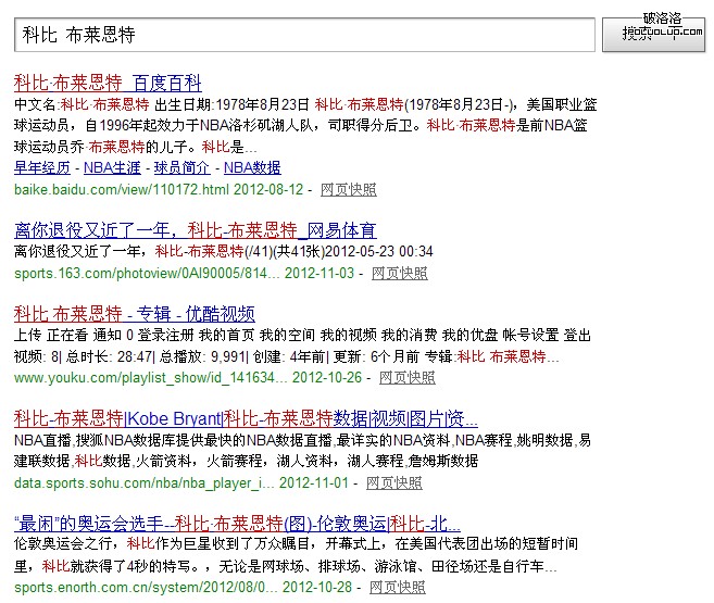可見減號在360搜索當中還是起了一定的作用,基本上沒什麼大問題,遺憾的是漏掉了百度百科。但是對比一下百度的搜索結果: