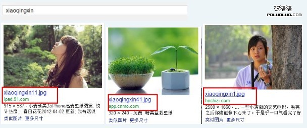 其實圖片URL也是一個可以為我們帶來流量地方,特別是圖片的路徑問題,這種包括URL和圖片的命名方式,下面呢,就站在搜索的角度中探索一下這種方式的與眾不同,那麼如圖所示,就是筆者搜索之後得到的結果,筆者搜索的是“xiaoqingxin”,如圖