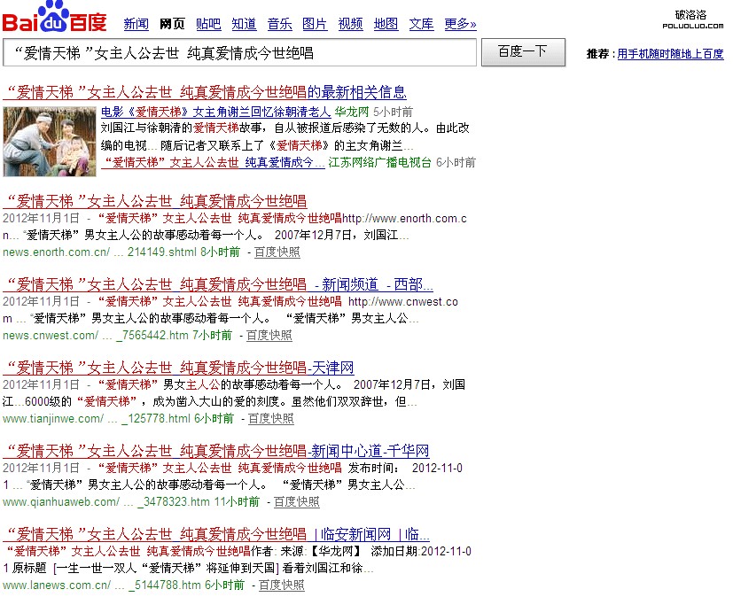 標題:“愛情天梯”女主人公去世 純真愛情成今世絕唱