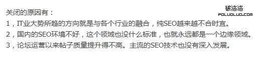 從這張圖中,可以看到國平老師對於seo論壇關閉的無奈,那麼這篇文章呢,就分析一下國平老師說出的三點關閉的原因吧,希望可以給自己更多的思考。