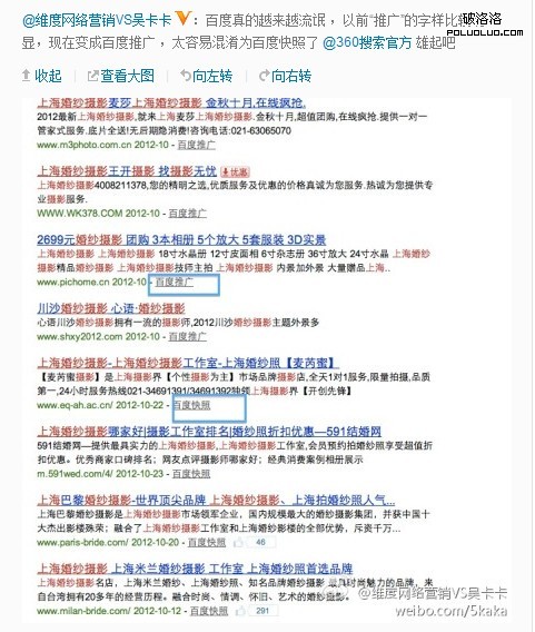 關於重視seo,我想起了百度競價排名,經常可以在360微博中看到百度強大的競價排名,選取一張圖來說明下
