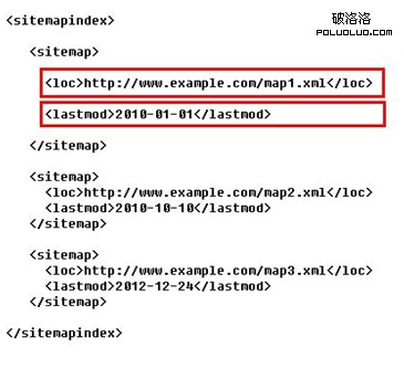 <loc>http://www.example.com/map1.xml</loc>識別Sitemap的位置(必填項)。這裡提供的信息是您分割的Sitemap文件存放路徑。