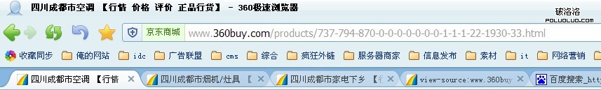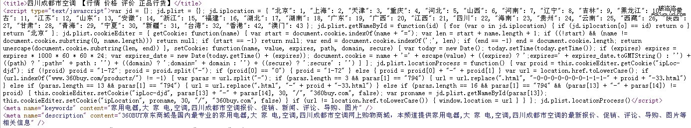 這兩者就是同一鏈接進入的,但是效果卻完全不同,我們進入“空調”這個列表的時候其程序(如下圖所示)用戶地址,顯示其地域性標題並且列表產品均是以當地的貨為基礎展示的,我是成都的,所以這裡我看到的標題就是“四川成都市空調”【行情 價格 評價 正品行貨】!