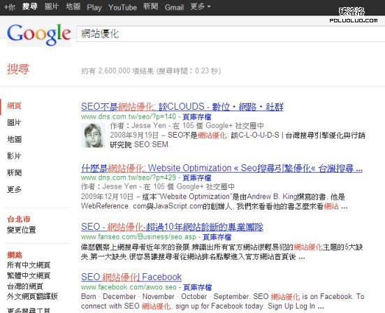 如下圖,我們輸入“網站優化”進行搜索。搜索引擎並不知道搜索者的真正需要,所以列出有順序的SERP出來。