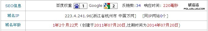 從圖片中我們可以看到該網站域名年齡為1年2個月22天,如果這是一個老域名的話,顯然會更受到搜索引擎的青睐,有利於網站排名。那麼,電子商務早已風生水起了,那麼這個做人民幣收藏的B2C網站的建立時間是不是有點晚了呢?答案是否定的,因為只要你覺得不晚,那永遠是不遲的,你現在努力還來得及。盡管這是一個不是一個老域名,但筆者堅信通過老四團隊對這個網站的優化,一定能獲得較好的排名和不少有效的流量。網站排名如此,B2C的發展趨勢也是這樣:後來者只要迎難而上也可居上,京東這個後來者超過1號店、當當網就是一個很好的例子。