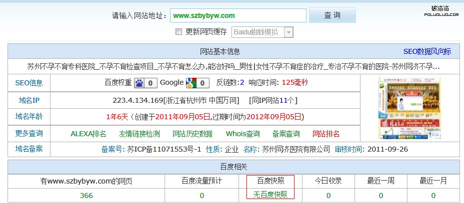這個是我隨便找的一個醫院被K的站,請看下面做了推廣後效果