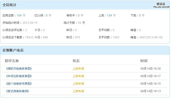 下面是一個截圖,是我剛剛從木螞蟻平台上截圖下來的,從8.15日到10月10日,不到兩個月的時間裡,我的軟件在木螞蟻市場上的總下載量已經達到七萬多,在91手機市場的下載量是六萬多,加上安智手機市場,飛流手機市場,APPchina,360手機軟件中心以及很多不知名靠采集生活的手機市場上,兩個月不到的總下載量近20萬,而且全部都是精准流量哦。
