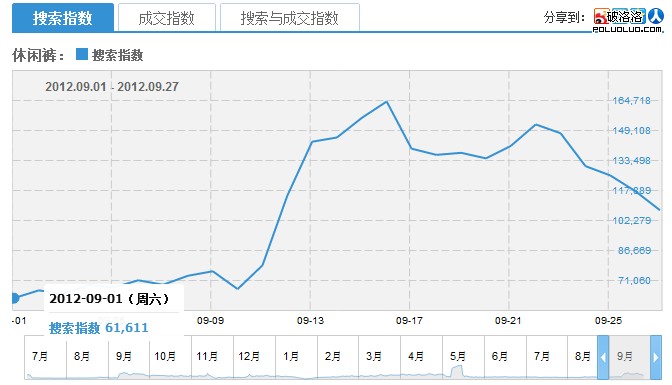休閒褲百度指數