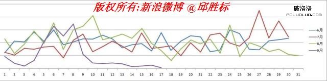 首先為了明確的知道具體哪一天抓取量出現了大的變化,同時和每個月有一個較明顯的對比,因此首先統計了下日志裡從6月份到9月17號的每天抓取量如下圖: